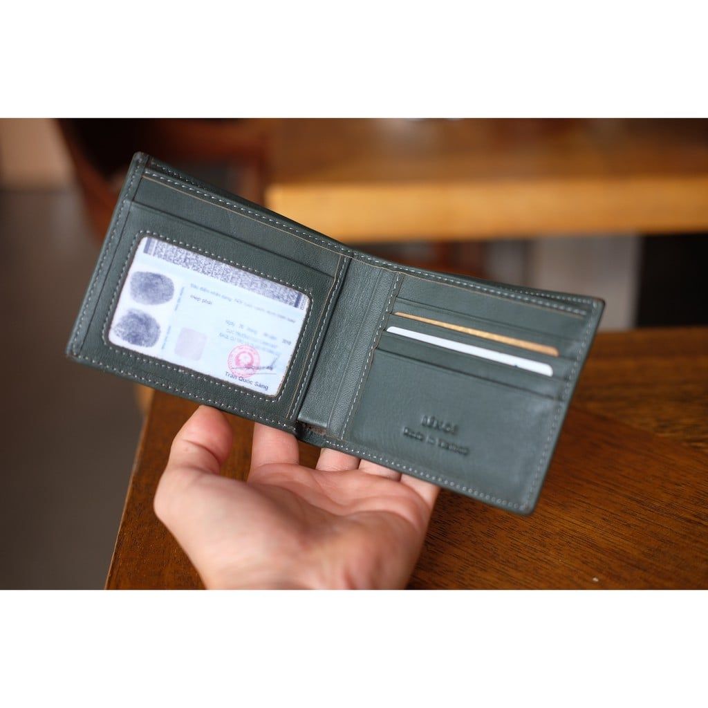 CALIN- Ví nam da bò tự nhiên màu xanh lá đậm - HX25-61